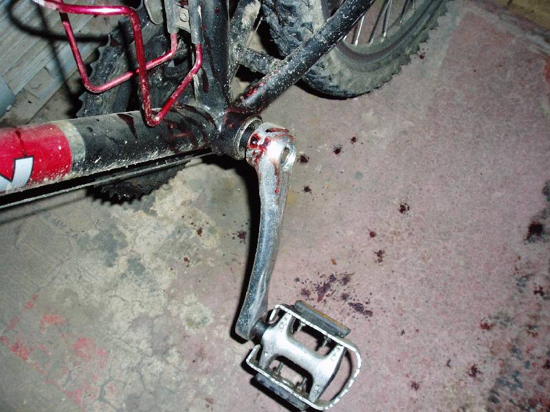 Zakrvácené kolo (levou rukou ho teď čistit nebudu):