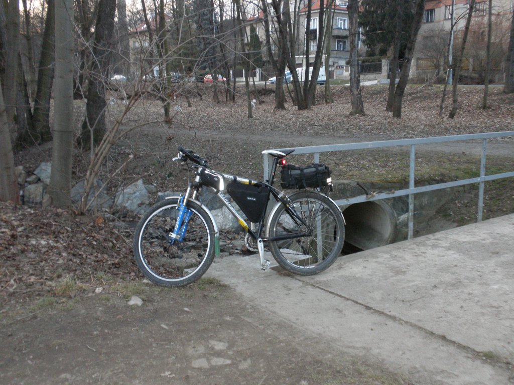 Samozřejmě jak se dalo čekat poté napadl sníh - docela hodně i v Praze - a nové součástky dostaly křest solí a sněhem - srdce mi při tom plakalo. Ale to se nedá nic dělat, kolo je buď výstavní exponát nebo nástroj na každodenní ježdění a pak nelze plakat nad každým šrámem. Ale jak rychle sníh přišel tak zase odešel, alespoň v Praze, a o týden později jsem dokončil roční práce výměnou trojtácu a vyčištěním a promazáním dalších součástí - přední a zadní brzdy, pedálů a středu. Poslední co mi ještě zbývá je přední vidlice, což pro mne bude premiéra, celou jsem jí ještě rozebranou neměl (o zážitky se podělím). Ale to si nechám až definitivně sundám blatníky, což plánuji po velikonocích. Tak pro ilustraci trojtác a elektrifikovaná krajina na okraji Prahy.