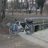Vše jsem zvládl v neděli 17.3. a v euforii jsem chtěl sundat i blatníky ale něco (prozřetelnost? osud? bůh? zkušenosti?) mi na poslední chvíli zadrželo ruku. Odpoledne jsem vyrazil lehce vyzkoušet nové díly - vše fungovalo v pořádku ale z lehké projížďky bylo nakonec 82 km přes Beroun, hospody zavřené a tak jsem celou trasu absolvoval systémem start-stop bez občerstvení a to se mi vymstilo. Ke konci mně chytla bolest v koleni a večer pak totální křeč v obou nohách. I to počasí - přes den bylo až 13 stupňů nad nulou ale dojížděl jsem při pouhých 5ti stupních nad nulou a v silném protivětru. Prostě jsem počasí podcenil a jarní slunce mne obelstilo. A pro ilustraci nedělní odpoledne a úterní ráno.